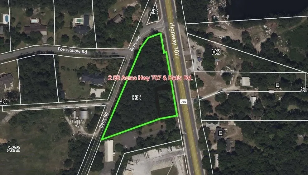2.56 +/- Acres in Murrells Inlet on Highway 707. Several possibilities for this corner lot as zoning is Highway Commercial. Call for more info.