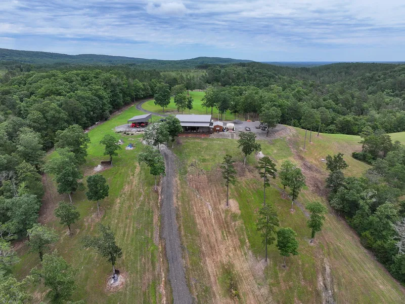 Camp Foxpen is a 114 acre tract in Hot Spring County located just north of Arkansas State Highway 84. The property is composed of two (2) beautiful ridges that are cut by a valley with a pristine, flowing creek. The internal road system provides easy access to the 2,400 square foot shop, which has a finished interior and offers a full kitchen and excellent entertainment space with a magnificent stone fireplace. The building is set up for outdoor entertainment with a great place to grill out, watch wildlife, or catch a ballgame. The shop also includes two (2) full indoor RV hookups. Connected to the shop is a 960 square foot covered patio that offers a magnificent view of the full sporting clays range, as well as a full bathroom. With its exquisite topography, the Sporting Clays Range offers a multifaceted selection of shooting challenges for the novice to the most experienced Sporting Clays shooter. The 1,200 square foot pole barn, covered metal carport, and shed all offer ample storage for equipment and gear.