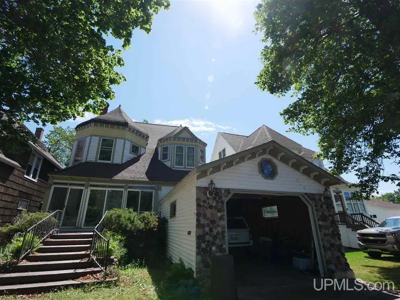 This is a 4 bedroom 1.5 bath home with so much character and uniqueness! You're eyes will be drawn to the stone and wood combination exterior and the castle like windows upstairs. As you enter the home there is a large enclosed porch that also has direct access to the garage. When opening the front door, you enter into a sweet little reading nook with a fireplace (decorative, seller has not used) and the handsome staircase leading upstairs. To your right is the spacious living room which opens to the naturally bright dining room with all original woodwork. The kitchen is large enough to include a cozy breakfast area table. This kitchen has plenty of storage for it's size with some original shelving. Off the kitchen is the main floor laundry that also has a door that leads to the backyard. Also off the kitchen is a sliding glass door that leads to a patio. The main floor also has a half bathroom. Going up the handsome staircase to the second floor, there are 4 bedrooms and a full bath. You'll notice the natural light and the hand painted floor and the unique handcrafted windows. Through the glass French doors brings you to the largest of the bedrooms. This room has the castle like feel with the large windows and the round radius style room. Down the hallway is access to the full bathroom, 2 other bedrooms and the large attic. This is a beautiful home located just blocks from the school and downtown Laurium and Calumet. George Gipp park and the recreational trails are less than a mile away. Check out this classic and add your TLC to make it even more charming! All information is believed accurate but not warranted. Buyer must verify information, recommended to inspect property and bears all risks for any inaccuracies. Tax information is subject to change. Seller requests 72 hours response time on all offers. Heat: Laundry room has space heat.