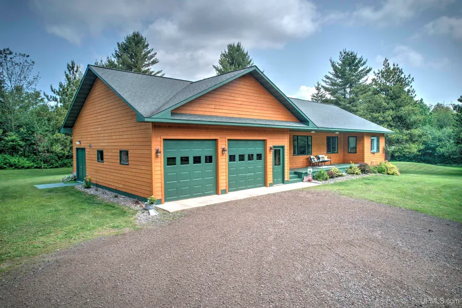 This stunning 4-bedroom, 3-bathroom home offers the perfect blend of modern amenities and serene country living. The heart of the home is an open-concept living area that connects to a well-appointed kitchen, ideal for both everyday living and entertaining. The kitchen boasts modern appliances and ample counter space, making meal preparation a delight. A covered rear deck is accessed off of the kitchen. Adjacent to the kitchen is a main floor laundry room, providing convenience and efficiency. The spacious primary suite on the main floor features a luxurious tile shower and a jetted tub, providing a private oasis for relaxation, along with a walk in closet. Laminate flooring spans the main level, offering a seamless flow throughout the living spaces, which are all accentuated by wide doors for accessibility. The fully finished basement expands the living space significantly, offering two additional bedrooms and a full bathroom. A highlight of the lower level is the cedar sauna with an electric sauna stove and tile shower, perfect for unwinding after a long day. The basement also includes a large recreational area, ideal for a home gym, media room, or additional living space. Outdoors, the property continues to impress with a large yard perfect for gardening and outdoor activities. The yard is currently thriving with a variety of berries, tomatoes, squash, and herbs, providing a farm-to-table experience right at home. A trailhead across the road invites you to explore the scenic surroundings, adding an element of adventure to this tranquil setting. Additional features include a substantial 28x40 pole barn with gravel flooring & electricity, perfect for storage or as a workshop. The attached two-car garage is insulated, heated, offers additional side entrance, and includes attic storage, ensuring plenty of space for vehicles and equipment. Practical updates such as in-floor heating on both levels, a new sump pump with battery backup, and a propane generator enhance the home's functionality and comfort. This Hancock home offers a unique combination of luxury, comfort, and convenience, making it an ideal choice for those seeking a modern home with ample space and natural beauty. Whether you're looking for a peaceful retreat or a place to entertain family and friends, this property has it all. Schedule a showing today and check out the 3-D tour!