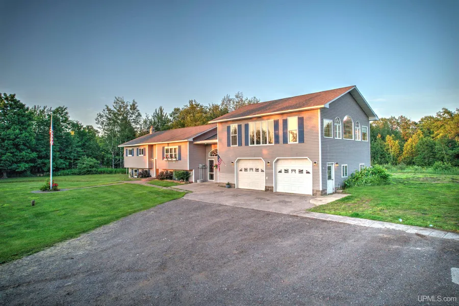 Welcome to this Stanton Township 5-bed, 1.5-bath oasis nestled on 9-acres with additional land potentially available. This custom built home offers the perfect blend of spacious living and natural beauty, ideal for those seeking a peaceful retreat or a family haven. As you draw near, the home's stunning exterior and meticulous landscaping will captivate your attention, creating an unforgettable first impression. Then there is the 2-car attached garage, which also offers in-floor heat to the entryway, dining room, and second floor family room. The property also boasts serene pond frontage, adding a cool water feature to the already stunning landscape. The pond includes your very own island complete with electricity! The pond also offers good fishing, providing a perfect spot for anglers to enjoy their favorite pastime. Step inside to discover a thoughtfully designed interior that caters to both family living and entertaining. The heart of the home is the expansive living room, which sits just off of the kitchen and dining room for easy conversations. The massive upstairs room, complete with a cozy stone fireplace, is perfect for gathering on chilly evenings. Large windows throughout flood this space with natural light and offer breathtaking views of the surrounding acreage and pond. The well-appointed kitchen features ample cabinet space, modern appliances, and a convenient layout that opens to a spacious dining area. Whether you're preparing family meals or hosting dinner parties, this kitchen is up to the task. With five bedrooms, this home offers flexibility for large families, guests, or home office spaces. The primary bedroom boasts its own en-suite bathroom, providing a private retreat within the home. Four additional bedrooms, two of which are downstairs, offer comfortable spaces for family members or guests. Also in the basement is the utility room with a washer and dryer that doubles as a changing room for the relaxing sauna. A flex space / game room can be found on this level as well with plenty of storage options. Outside, the possibilities are endless on this 9-acres. Enjoy the above-ground pool and large deck on warm summer days, explore the woods, or simply relax and take in the peace and quiet. The property features a volleyball court that doubles as an ice rink in the winter, complete with lights for evening enjoyment. The large yard provides space for gardening, outdoor activities, or future additions. Offering a second drilled well for gardening, you are sure not to run out of water. The property also includes 2 acres of invisible fenced-in yard, perfect for pets to roam safely. Located in sought after Stanton Township, just a short 10 minute drive to Houghton, this property offers the best of both worlds ‹“ privacy and convenience. Don't miss this opportunity to own a slice of paradise. Schedule your viewing today and start imagining the possibilities this remarkable home and property have to offer! Check out the 3-D Tour!