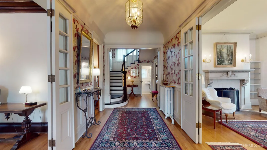 Step back in time into this 6 bed / 2.5 bath original historic home in the heart of the Village of Calumet! This grand residence exudes the elegance of a bygone era. The vestibule welcomes you into the reception hall flanked by the formal living and dining rooms anchored by stunning original woodwork and crown molding. The elegant dining room boasts a fireplace centerpiece surrounded by original, built-in, china cabinetry. Four separate stately fireplaces dotted throughout the home bring warmth along with the radiators. The grand staircase with ornate spindles leads upstairs while a separate staircase offers service access from the attic down to the basement along with a ground level entrance. Off of the reception hall, adjacent to the half-bath enjoy the privacy of relaxing in the den which features a fireplace and beam ceiling. The functional kitchen provides ample workspace including ...