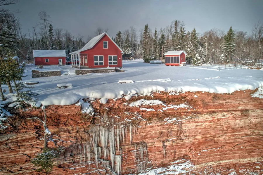 Discover your own slice of Lake Superior paradise in this stunning waterfront Cape Cod, perfectly positioned on nearly 3 acres with 245 feet of cliffside shoreline. Built in 2014, this meticulously maintained home combines modern comfort with breathtaking natural beauty. The exterior makes an unforgettable first impression with its classic red LP Smartside siding, crisp white trim, and dramatic bluff setting overlooking the greatest of the Great Lakes. A detached heated 2-car garage with workshop space provides ample room for vehicles and projects, while the thoughtfully landscaped grounds include a garden area and native plantings that complement the natural woodland setting. Step inside to find an intelligently designed interior where every space is maximized for both function and views. Customization flows from the kitchen cabinets, to the built in fridge space, to the staircase stora...