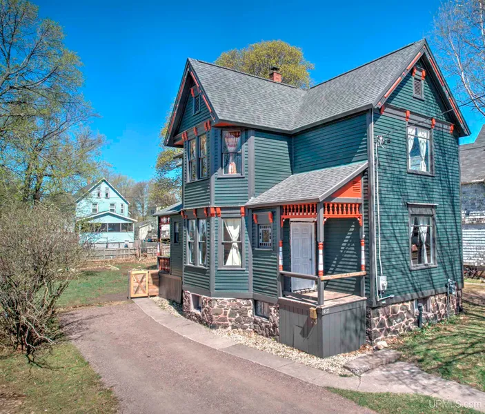 Welcome to 417 Tamarack Street ‹“ a classic Victorian home filled with character, space, and modern updates! This 4-bedroom, 2-bathroom residence offers 1,800 square feet of living space across two stories. Step inside to find original hardwood floors, tall ceilings, and large windows that bring in abundant natural light. The main floor features a spacious living room, formal dining area, a bright kitchen, full bath, and a convenient first-floor bedroom. Upstairs, you'll find three generously sized bedrooms and a second full bath. The second level also offers the potential to use a separate entrance, creating an opportunity for a duplex-style setup or private guest quarters. This home has been thoughtfully updated with a new roof, new high efficiency furnace, new electrical system, new copper plumbing, new steel chimney liner accompanied by a new woodstove‹”providing peace of mind and energy efficiency for years to come. Outside, the home boasts extensive woodwork restoration and a fresh Sherwin-Williams paint job, adding to its classic curb appeal. Along with the new driveway. Enjoy the fenced-in backyard‹”perfect for pets, gardening, or entertaining. With a central location near schools, parks, and local amenities, this home is full of potential and ready for its next chapter. Don't miss the opportunity to own a piece of Upper Peninsula charm! Seller is open to including furnishings with the right offer, making this a true turn-key opportunity.