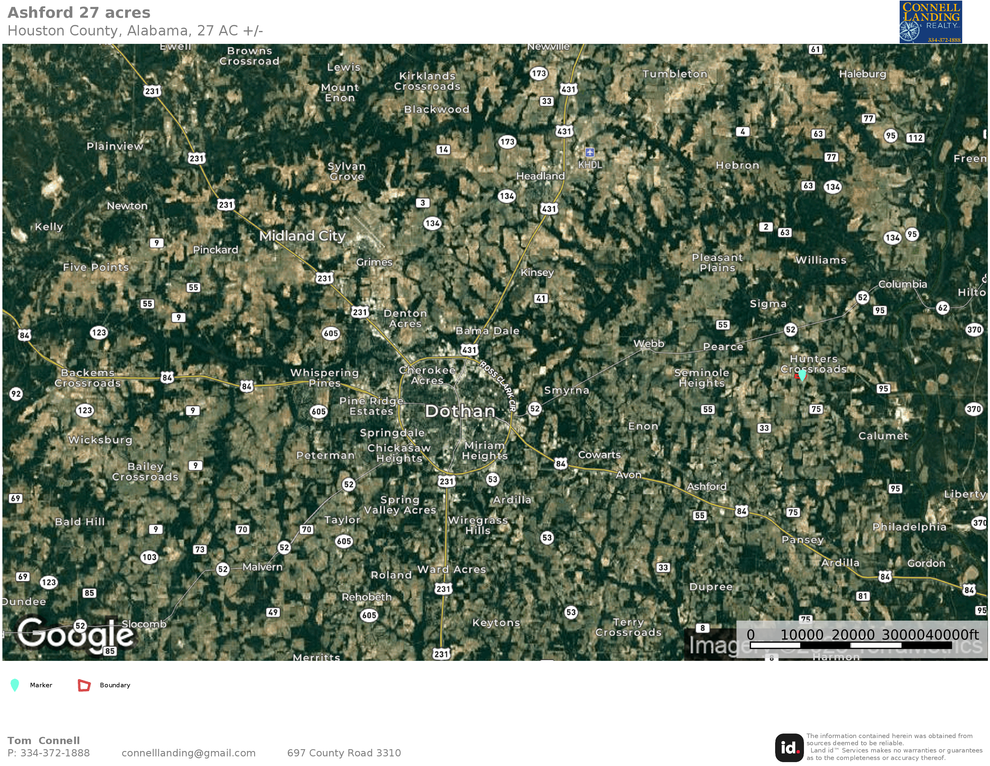 Location: This property is 6.5 miles north of Ashford, 14.5 miles northeast of Dothan, 16 miles southeast of Headland, and 5 miles from Farley Nuclear Plant.