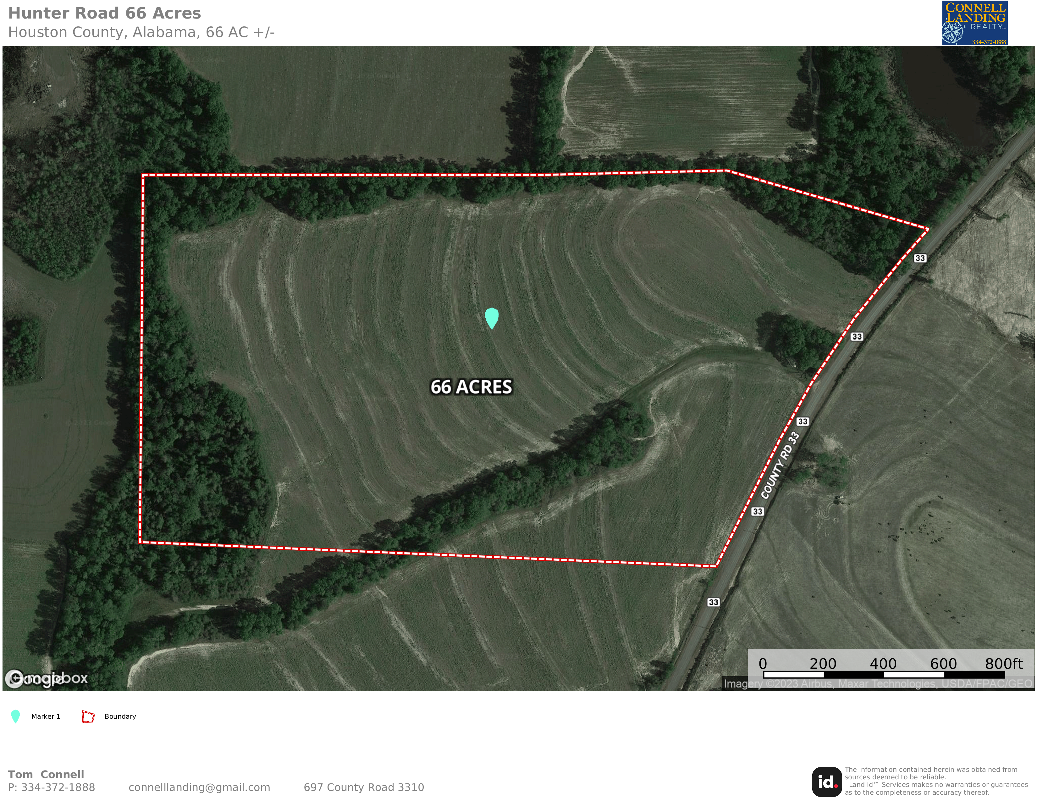 This is a rare opportunity to own a farm just east of Dothan. The soils here are productive for growing crops or timber. There are approximately 50 acres of field ground and about 16 acres of timber land. The west end farthest from the paved road has the largest block of timber. There is a row of mature trees also running northeast in the south end. This 66 acres is very private feeling with a great buffer of trees around the majority of this property. There are many good building sites to choose from. This is zoned agricultural and is not restricted.