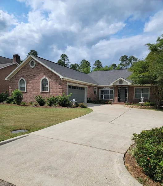 Large grandroom with column separating kitchen, breakfast and dining. FP and built-in bookcase. All one level, large kitchen with plenty of cabinets. Laundry and 1/2 bath off kitchen into double garage. Split bedroom plan with 2 bedrooms and adjoining bath between. Master suite is large and plenty of closet space, double vanities, large shower, plantation shutters throughout. Newer light fixtures in DR, kitchen, LR, breakfast room, and bedroom with fan and new lighting fixture. New carpet in bedroom, hardwood flooring in LR, kitchen. New gate, new steps and hand rails on back deck. Newer tile in all bathrooms. Newer stove/oven, refrigerator. New composit back door and frame. New pavers on front porch. Screens on all windows.