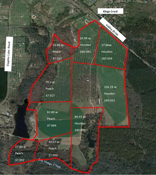 471.45 Acre Pecan Operation on Valley Drive in both Peach & Houston County. Peach County acreage is 228.86 acres Houston County acreage is 242.59. 146 acres is mature irrigated pecans and 160 acres is young irrigated pecans. Property has an equipment barn, horse or cattle fenced area, pond, and two irrigation wells for pecans. Pecan cleaning and drying equipment is included.