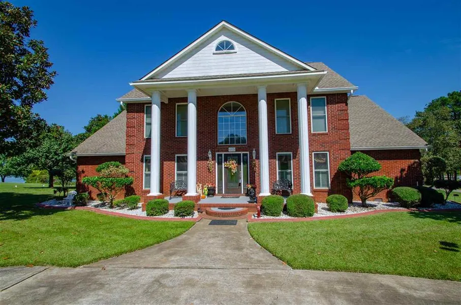 What a beautiful home on the lake in desired school zones. This is a rare find in Houston County. The elegance of this home with personal touches is breath taking. Upon entry your eyes are drawn up to the custom copper two story ceiling, wood columns flank the entrance with an office and formal dining room on either side. Entering the family room with vaulted ceilings, take advantage of the lake views and admire the massive fireplace. The kitchen is truly unique with a double sided fireplace, additional office area, granite counter tops, copper ceiling and hidden laundry room. The master bathroom is spacious and the view from the master bedroom is awesome! Upstairs there are three bedrooms two with a jack & Jill bathroom and one bed room with it's own full bath. Outside enjoy the one acre and your own private island with a dock and swing! Talk about relaxing....