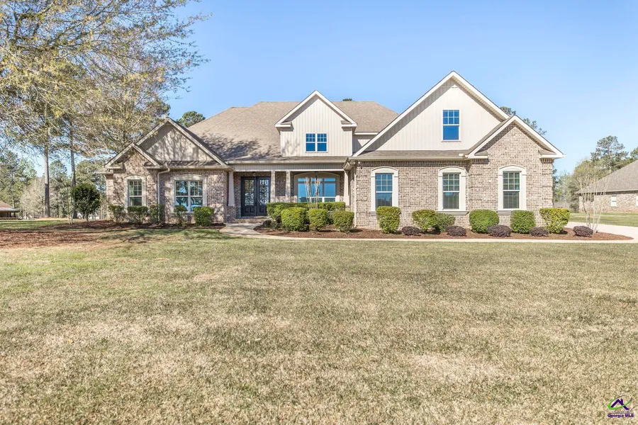 Stunning custom home in Flat Creek Reserve, if you have been looking for a home with all the upgrades this is the one. The property is nearly 2 acres and has a stunning view of the water. The floorplan is very functionable with a tremendous amount of space to be able to make this house your home. Beautiful entry with office or could be used as a dining room. Family room with high coffered ceilings featuring a stacked stone fireplace. The kitchen has custom two tone cabinets, with stone backsplash w/ pot filler, breakfast bar, island and walk in pantry, it's absolutely gorgeous. Just off the kitchen you have a large screened porch with a custom grilling kitchen, great for entertaining. Master suite features shiplap with an amazing master bath with separate vanities, two custom closet systems with shelving and drawers, tile shower and tub. There are two additional bedrooms downstairs that are split from the master. The upstairs features a large secondary suite, two additional living areas, with one that could easily be a 5th bedroom. The home has foam insulation and a large amount of attic/storage space. Don't miss out.