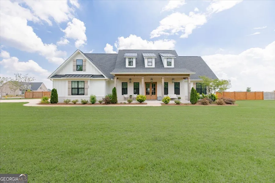 LUXURY 5 BEDROOM HOME IN THE PRESTIGOUS ACRES AT PLANTER'S RIDGE SUBDIVISION THAT WAS METICULOUSLY BUILT WITH QUALITY CONSTRUCTION & DESIGNED WITH BEAUTIFULLY SELECTED UPGRADES THROUGHOUT & LOCATED ON .91 ACRE LOT IN AN EXCELLENT SCHOOL DISTRICT & WITHIN WALKIING DISTANCE OF THE COMMUNITY AREA FEATURING SPLASH PAD, PLAYGORUND, PAVILION WITH OUTDOOR FIREPLACE & ACCESS TO THE COMMUNITY POND! Welcome to this stunning, custom built home in The Acres at Planter's Ridge! With a full brick exterior, hardy board accents, and a Gorgeous stained double front door, this home offers timeless curb appeal. The spacious front porch is the perfect spot to unwind and take in breathtaking sunset views. Upon stepping into the beautiful Foyer, you will fall in love with the open floor plan that is filled with high-end finishes, including engineered hardwood floors, custom trim and moldings, and designer trey ceilings. The great room features a gas fireplace with floor-to-ceiling decorative stone & cedar mantle, coffered ceilings, and custom built-in cabinetry & shelving. The chef's kitchen boasts of granite countertops, massive island with a farmhouse sink, custom cabinetry with soft close doors and drawers, a decorative hood above the 36" six burner gas range, under-counter lighting, and a walk-in pantry. The formal dining room features Beautiful Lighting & Gorgeous Views and there is an additional dining area off the Kitchen with an oversized window for gorgeous natural lighting. The primary suite is a true retreat with a tongue-and-groove hardwood ceiling, spa-like bath with a free-standing tub, custom tile shower with a frameless glass door, ship lap accent walls above the separate vanities, and two walk-in closets with one of the closets featuring cedar shelving. There are 3 additional guest bedrooms all featuring walk-in closets on the main level with access to a large bath with dual vanities, while the fifth bedroom located upstairs includes a walk in closet & private ensuite, perfect for guests, game room, man cave, playroom, gym, home office, etc. The options are endless for this spacious room. Step outside to enjoy the screened porch with a tongue-and-groove ceiling and wood-burning fireplace with an additional patio featuring a covered pergola and a gas hookup for a grill to enhance your entertaining space. The .91-acre features a Privacy Fence with Double & Single Access Gates & includes a designated garden area and a full sprinkler system to keep everything looking lush. If you missed out purchasing one of these Gorgeous Homes in this sought-after community, now is your chance to own a piece of paradise in this thoughtfully designed home that is full of upgraded features to include at Tank-less Water Heater and perfect for entertaining and everyday luxury. Call today to schedule your private tour!