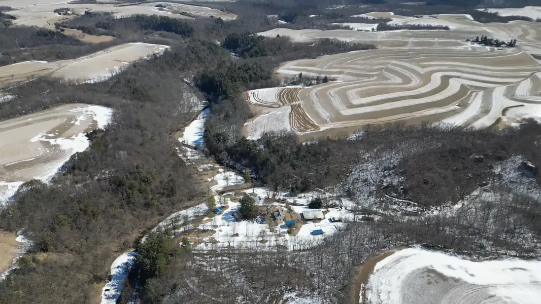 This property has over 1 mile of the Winneabago Creek flowing through the valley full of trout. There are approximately 29 acres of tillable land on top and 129 acres of woods. 46 acres of the woods are in RIM. The tillable is currently planted into corn, bean, and alfalfa. There is a trail system throughout the property which allows for easy access to many stand locations. The 5 open acres in the valley floor is grass and could be an incredible food plot. There is a grove of towering white pines which is the home for many turkeys to roost! There is a pond on top on the edge of the tillable. The 3100 sq ft main house has 4 bedrooms, 3 bathrooms, 2 car attached garage and the attention to detail is amazing! There are two cabins which are approximately 1000 sq ft each. A heated 25x38 two story garage/workshop sits next to the house. The other outbuildings include: 60x85 pavilion with concrete floor, 28x40 barn, 15x42 barn, 20x38 woodshed, 8x18 greenhouse. The greenhouse and 5 raised 5x36 flower beds all have water and electricity. There is a pool and a pool house next to the main house.