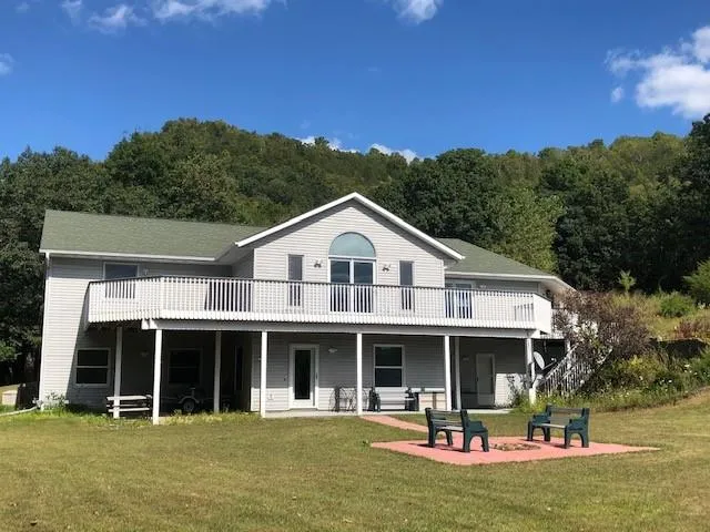 Incredible setting! You will love this scenic retreat located on 47+ acres where wildlife and nature abounds. This spacious home offers an open concept kitchen - dining - living room experience with lots of windows to bring in plenty of natural light, a beautiful double-sided fireplace, and patio doors that lead out to the new maintenance free wrap around deck. The walk out lower level features a huge master suite with a jetted tub and separate shower in the private bath, a cozy family room with another double-sided fireplace, additional bedrooms or office space, and laundry with new washer & dryer. The park like setting provides a wonderfully peaceful ambiance that you will love coming home to every day!