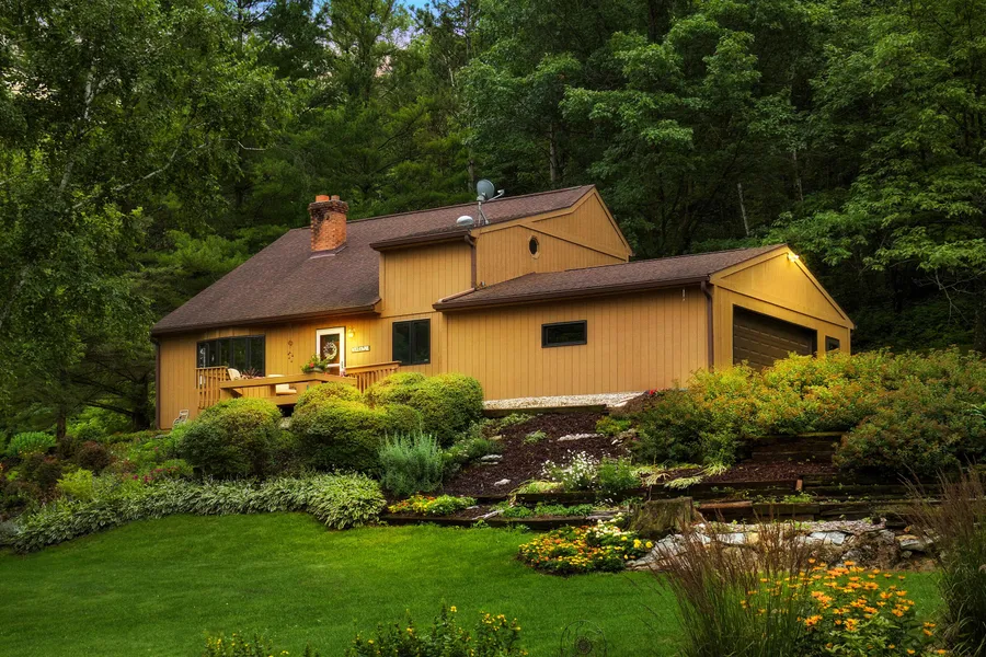 Peaceful Country setting in quaint neighborhood. on 1.78 Acres incl vacant lot. Well cared for home has eat in kitchen with french doors to deck facing well landscaped back yard leading into the woods where wildlife abounds. Centerpiece of main level is the towering stone fireplace with a hearth big enough to seat 6. Guest bedroom/den with built ins ( 4th bdrm) and half bath complete main level. Upstairs Master Suite ,2nd bedroom & 2nd full bath+ favorite space upstairs, a cozy loft for those days you just want to curl up with a good book, full of natural light. Lower level mud room with stairs to garage, is plumbed for 3rd bathroom (under rugs in mud room),+ rec rm/workout rm/game rm area. Additional small garage for mowers & toys. just 5 minutes to LaCrescent & 8 minutes to La Crosse