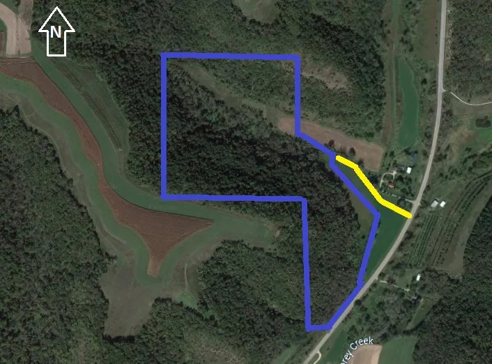 This property features a hidden valley field encircled by hardwood bluffs. 6 acres of tillable ground that grows good corn & hay. Half the valley has great south facing exposure which is great for holding game year round. Well maintained ATV trails offer easy access to most of the parcel. Private easement access from Hwy 76. 50 min. to Rochester, 20 min. to Winona or 30 min. to La Crosse.