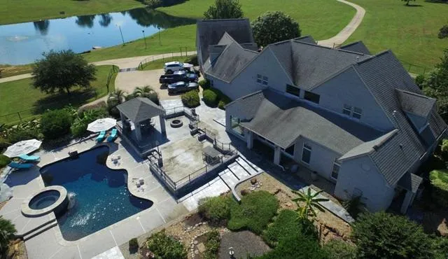 This impressive four bedroom, four and one-half bath home has clean lines and gorgeous windows that bring in the natural light! The dramatic two-story great room with fireplace and cherry wood built-ins is the perfect spot for entertaining and family gatherings. It opens into the gourmet kitchen that has it all granite counter-tops, pantry with built-in China storage, subzero refrigerator and ice-maker. There are two laundry/utility rooms downstairs one is in the master suite bath and has a Whirlpool front load washer/dryer. You enter the master suite through a sitting. The master bath has separate his/her granite vanities, walk-in extra large shower, and three closets. There is also a study with beautiful cherry wood built-ins and a powder room for guests. Upstairs, there are two more bedrooms with private baths and great closet space. There is a walkway with storage and a workout area leading to the garage apartment. The apartment has a nice living area, large bedroom, a full bath, kitchen, two large walk-in closets, and a full size washer/dryer. No detail has been overlooked there are plantation shutters throughout the home, a security system, and zoned central air and heat with four units. The large 3-car garage has a storage closet, work bench, and an additional attached portico. There is an extra large outdoor concrete and tile patio with covered cooking area, ceiling fan, and built-in brick fire ring. The grounds are beautifully landscaped with a sprinkler system, and inviting in-ground heated swimming pool. The pool is 11.5 deep with a heated spa, air conditioned pool house with full kitchen and bath. There is an attached metal barn behind the pool house and a 3,000 square feet classic car museum with a half bath and central air/heat. Ranch infrastructure includes: enclosed metal RV building 46x16 with electric power, an attached 40x46 covered equipment shed, metal hay barn with 100 bale capacity, small metal feed barn, pipe corral with working pen, wood corral with working pen, deep water well and vintage aeromotor windmill. This first class East Texas Estate sits on 214 manicured acres approximately 35 acres in hardwood/pine mix and the balance improved pasture. There is a 1.5-acre lake, 2-acre lake, small pond, running creek, and one mile of road frontage! There is abundant wildlife and great deer hunting enjoy the hunt in the comfort of three enclosed propane heated deer stands on towers. This fabulous property is one of a kind! Shown by appointment only.
