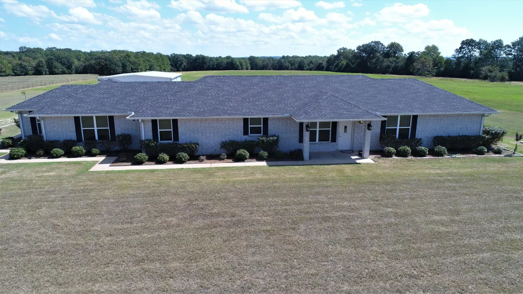 This pristine three bedroom, three and one-half bath brick home is something to see! Situated on 62.87 acres, half being improve pasture planted with jig grasses and the other wooded, this is the perfect property for cattle, horses, and hunting. The large living area is open to the kitchen with bar seating for entertaining guests. The island kitchen has granite counter-tops, attractive back-splash, custom Birch cabinets with under cabinet lighting, stainless appliances, double ovens, and a large pantry. The conveniently located laundry has a utility sink and half bath that serves guests well. There is pretty tile flooring throughout the home and laminate flooring in the bedrooms. The master bedroom has a large walk-in closet and a spacious bath with his and her sinks. Two guest bedrooms have good closet space and their own private bath, one being handicap accessible. Outdoors, youll love the manicured grounds, welcoming porches, outdoor speakers surrounding the home, and the office space and storage areas in the 2-car garage. There is a 30x40x14 shop as well as a 10x12 shed to storage all equipment and toys. The owner reports large deer on the property that are fed year-round. This home has wonderful updates including: all doors handicap accessible, tinted double glass windows, hot water circulating system, emergency switch in the den that turns on all outside flood lights, all underground utilities, foam insulation in the home and shop, and a sealed garage floor. This property is one of a kind, dont miss your chance to own a gorgeous home and property. Call us today!