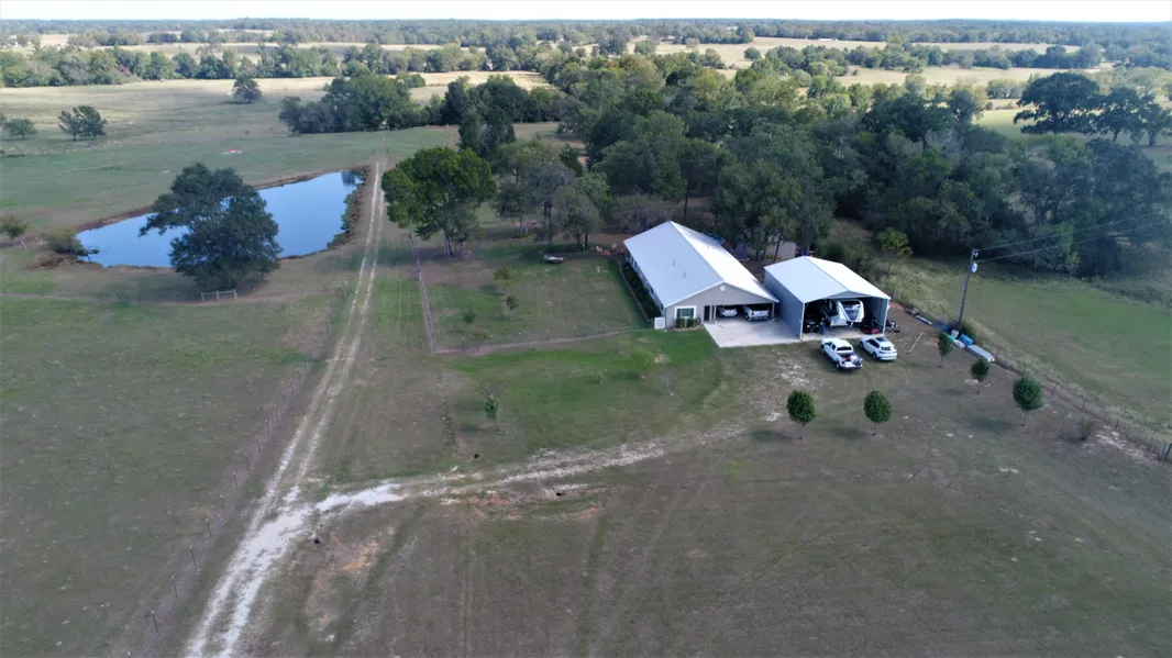Nestled in pretty shade trees, this four bedroom, two and one-half bath home on 10-acres is sure to impress! As you come down the driveway, you'll immediately fall in love with the beautiful setting. The open concept living, dining, and kitchen area will make gathering easy. The custom windows throughout the space really bring the outside in and there is a sliding glass door for easy access to the back patio. The gourmet kitchen has granite counter-tops, custom cabinets, nice appliances, and a spacious pantry. The secluded master suite has glass doors that also lead to the back patio, huge walk-in closet, and spa bath with his and her sinks, jetted tub, and separate glass shower. Two guest bedrooms have great closet space and share a very nice hall bath with walk-in shower. The handy laundry room has a utility sink and good storage space. Upstairs, you will find a home theater with wet bar and wine fridge, bunk room, and half bath. The 2-car garage is currently being used for a game room and it has custom garage doors with special screens to let fresh air in. There is also a 2-car carport. The backyard is your own private oasis beautiful patio with ceiling fans, deck, above-ground pool, and a fire-pit for those chilly evenings all overlooking a stocked lake. There are several shops and a RV shed for all your toys and equipment. No detail has been overlooked in this custom home from custom windows, cabinets, beautiful tile and hardwood floors, and so many more extras you don't want to miss out!