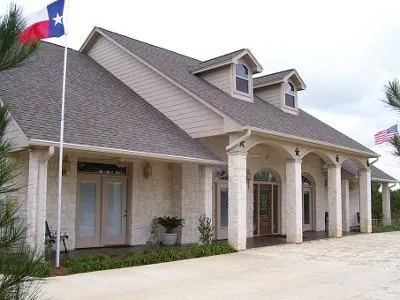 This beautiful 3BR 3.5B home is located in Grapeland, Tx on 278.77 acres. The home has many custom features, such as remote controlled ceiling fans & fireplace, custom red oak cabinets in the kitchen and bathroom vanities, seamless granite kitchen countertops and island, and cove lighting in the living areas. The master bath has custom marble vanity countertops and a custom marble shower, complete with steam sauna. The home was built with energy efficiency as well as beauty in mind - three-paned glass in the doors and windows, 2 52-gallon hotwater heaters on a loop system for energy savings, and 2 American Standard heat and air conditioning units. The home is landscaped with 6 underground watering stations and the front porch has the view of a large fishpond with 3 waterfalls. The 287.77 acres is a certified pine plantation. The property also has a creek, 5 ponds, and is completely fence...