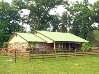Located in Crockett ISD -- Beautiful 2400 sq. ft. river rock home with metal roof, built in 2000. Home has 4 large bedrooms all with walk-in closets and 2 baths. The master bath has a Jacuzzi tub with Italian slate and a 4-ft. shower with seat. There are brass ceiling fans throughout the house. The kitchen is very spacious (15'x17') with wall-to-wall custom built block panel cabinets and drawers and a large island with stools, white antique tile floor and a built-in desk with file drawers. There is a mud room connected to a large walk-in pantry with wall-to-wall shelving. The formal dining room is very roomy (12'x18'), white antique tile floor, has a custom built-in china cabinet, and has four 4'x6' windows to bring in the sun and views overlooking your land. The large living room (19'x23') has vaulted ceilings, tan Terrazzo tile and has a river rock fireplace that accepts wood logs or can use a gas log furnace that stays with the house. The fireplace has a large mantle that is perfect for your finest Christmas displays and stockings. The attic has pull down stairs with plywood flooring for a big storage area, plenty of standing and walking area with lighting of entire attic area. There is a back patio with domestic grapevines growing overhead that you can reach up and pick. The front porch is 10'x40' that overlooks the back pasture, perfect to sit out on in the early morning with a cup of coffee and watch the sun come up.