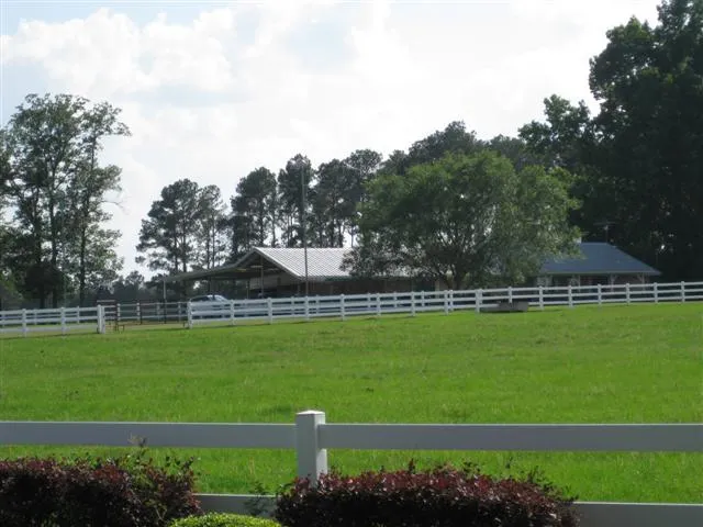 Horse Lover's Dream! This property has so much to offer - from the time you pull into the asphalt drive way you will notice the attractive fencing and great set up for horses. The main home is a ranch style four bedroom, three bath with metal roof, wonderful porches and oversized carport. Inside, you will find a large, open living / dining and kitchen. The kitchen is so pretty with granite counter tops, stainless steel appliances, a nice eat-in bar area, and under counter lights. There is cove lighting in the den and dining and the pretty hardwood floors make ranch living easy. This great home has lots of closet space and the private master suite has its own bath and sitting area. Outdoors, the larger horse barn has four paneled stalls, each with their own run, 25' x 25' tack room, and two paddocks. The smaller barn has two stalls, there is a riding pen with custom lighting, a horse walker and the property is fenced and cross-fenced with improved bahia / coastal grasses. There is a pretty pond on the back of the property and an equipment shed. There is also a guest home on the property that has two bedrooms and one bath with a handy kitchen and fireplace.