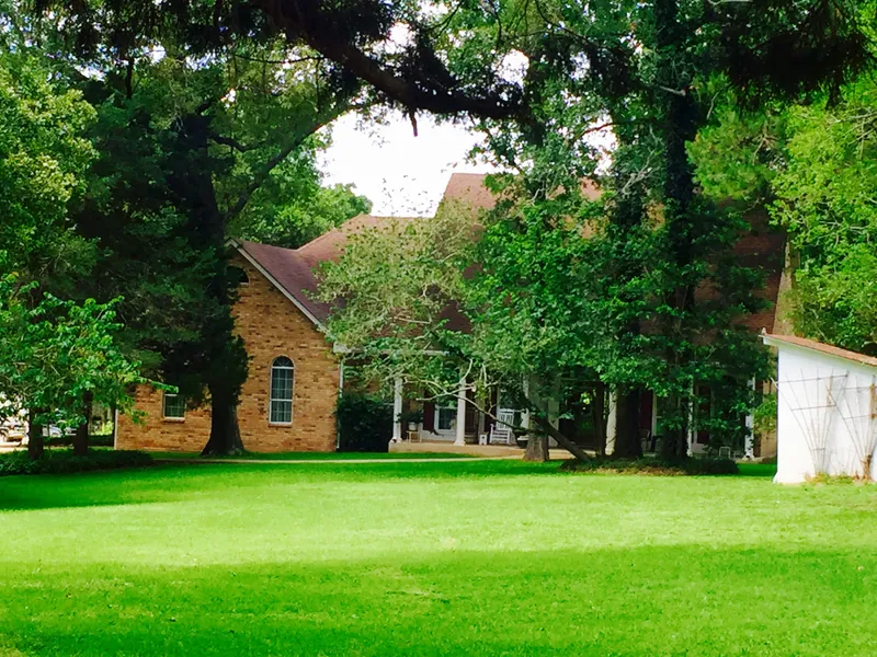 Beautiful! This four bedroom, three bath brick home sits under towering oak trees in the middle of a 100 acre cattle/horse ranch. The property has so much to offer - private entrance gate for security, pipe fences, and a pretty yard with live oaks, crape myrtles, hickory and fig trees. The beautiful home has nice mouldings, pretty wood floors, tall ceilings, an open kitchen with custom cabinets, and the formal dining off the entry makes the perfect room for entertaining! The living room has a wood burning fireplace with blowers and a wall of windows across the back of the home that overlooks pretty pasture land! The large master suite has walk-in closets, double sinks, oversized tub and separate shower and the spacious laundry has lots of storage! Outdoors - 700 ft. deep water well, sprinkler system, 40' x 80' shop, 30' x 80' shop 20' x 100' equipment shed, 65' x 100' equipment she...