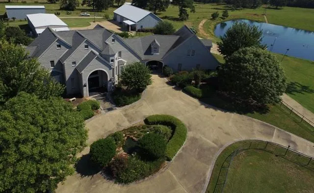 This impressive three bedroom, three and one-half bath home has clean lines and gorgeous windows that bring in the natural light! The dramatic two-story great room with fireplace and cherry wood built-ins is the perfect spot for entertaining and family gatherings. It opens into the gourmet kitchen that has it all granite counter-tops, pantry with built-in China storage, subzero refrigerator and ice-maker. There are two laundry/utility rooms downstairs one is in the master suite bath and has a Whirlpool front load washer/dryer. You enter the master suite through a sitting. The master bath has separate his/her granite vanities, walk-in extra large shower, and three closets. There is also a study with beautiful cherry wood built-ins and a powder room for guests. Upstairs, there are two more bedrooms with private baths and great closet space. There is a walkway with storage and a workout area leading to the garage apartment. The apartment has a nice living area, large bedroom, a full bath, kitchen, two large walk-in closets, and a full size washer/dryer. No detail has been overlooked there are plantation shutters throughout the home, a security system, and zoned central air and heat with four units. The large 3-car garage has a storage closet, work bench, and an additional attached portico. There is an extra large outdoor concrete and tile patio with covered cooking area, ceiling fan, and built-in brick fire ring. The grounds are beautifully landscaped with a sprinkler system, and inviting in-ground heated swimming pool. The pool is 11.5 deep with a heated spa, air conditioned pool house with full kitchen and bath. There is an attached metal barn behind the pool house and a 3,000 square feet classic car museum with a half bath and central air/heat. Ranch infrastructure includes: enclosed metal RV building 46x16 with electric power, an attached 40x46 covered equipment shed, metal hay barn with 100 bale capacity, small metal feed barn, pipe corral with working pen, wood corral with working pen, deep water well and vintage aeromotor windmill. This first class East Texas Estate sits on 214 manicured acres approximately 35 acres in hardwood/pine mix and the balance improved pasture. There is a 1.5-acre lake, 2-acre lake, small pond, running creek, and one mile of road frontage! There is abundant wildlife and great deer hunting enjoy the hunt in the comfort of three enclosed propane heated deer stands on towers. This fabulous property is one of a kind! Shown by appointment only.
