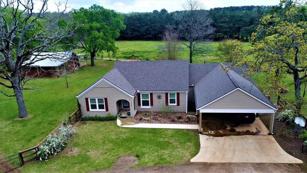 Expect to be impressed with this gorgeous 104.367-acre property with approximately 60% pretty hardwoods and pine and 40% open pastureland, and 2 picture perfect lakes and a nice pond. Fishing off the piers of the two lakes or kayaking and enjoying the views will become your favorite pastime. The beautiful ranch style home offers an open kitchen, dining, and living for great entertainment. The master bedroom has access to the back porch, a walk-in closet, and a private bath with a large walk-in shower. Two guest bedrooms are nice sized and share a hall bath. Outdoors, you will enjoy the 2-car carport and the relaxing back porch with an additional guest room attached. The large red barn is the perfect guest house for your additional family with an open living and kitchen, full bath, private bedroom, and upstairs loft that can be used as a second bedroom. The barn also has covered parking for your tractor or equipment, a covered area for hay or additional storage, and a back porch. If the main house and guest barndominium has not won you over, the property will. This tract has tons of frontage on FM 228, it is fenced and cross fenced, has a set of working pens and a round pen, and the views are unbelievable! This is the perfect spot to run livestock and enjoy recreational activities. Call us today to schedule a private showing.