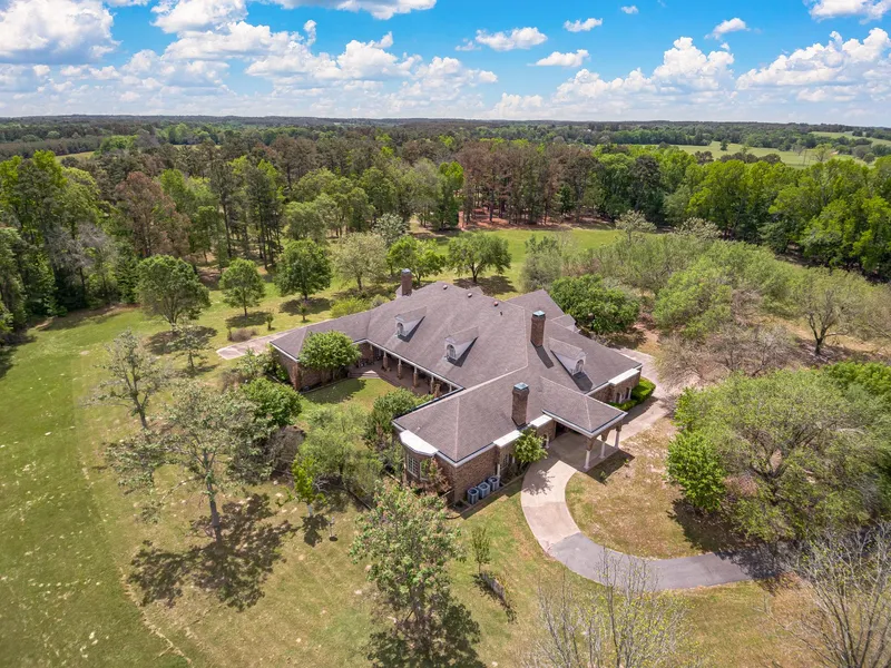 Nicol Farms is conveniently located just 14 miles south of Palestine in Grapeland, TX, taking you away from the hustle and bustle of life. The gated tree-lined drive leads you to a turn-key estate that boasts an 8,900 sq.ft. five-bedroom, five bathroom, and two half bathroom home with incredible ceilings and wood craftsmanship. From the moment you walk in the foyer, you will notice the grand dining room and beautiful floor to ceiling wood office. The kitchen is made for entertainment looking out over the large living space with two massive wood burning fireplaces and full built-in bar. The home seems never ending with large bedrooms and plenty of closet and storage space. Outside the home is a three-bedroom, two bath guest home that would be great for a ranch foreman. The guest home has a nice swimming pool with a large pavilion and bathroom to host family functions or corporate events. This ranch is also equipped with a maintenance barn and 6-horse stalls. This 208-acre property is fenced, cross-fenced, with excellent grazing and hay production and 40% hardwoods for great hunting. Towards the back of the ranch, you will find an 18+/-acre stocked lake that the owner reports large Florida bass up to 10 pounds! This property is very secluded and will make the perfect cattle ranch, horse farm, or corporate retreat! Call us today for more details.