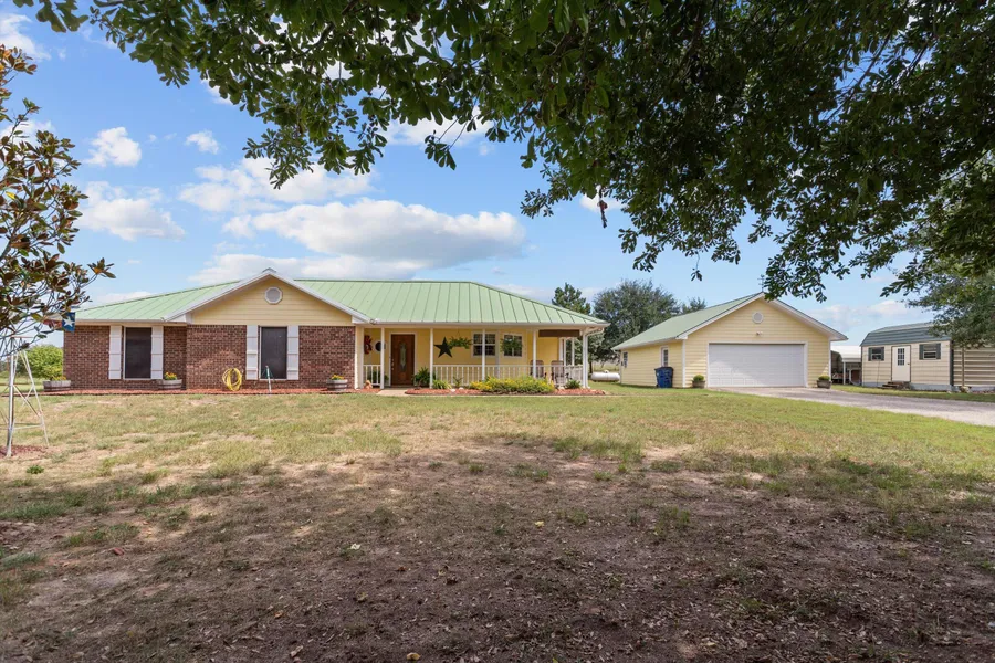 Come see this well-maintained three bedroom, two bath ranch-style home, just minutes outside of Grapeland, TX! This home features a beautiful setting on 6.16-acres, completely fenced with ranch wire and fruit producing peach trees. The welcoming front porch is the perfect spot to sip sweet tea in your rocking chair. The living area features a vaulted ceiling and leads into a spacious kitchen with eat-in bar, lots of cabinets and counter space, pantry, breakfast nook, and all appliances will convey with the sale. The primary bedroom has a large walk-in closet and a private bath with walk-in shower. Two guest bedrooms share a hall bath with shower/tub combo. The home has wood laminate and tile throughout for easy cleanup, 2-inch wood blinds throughout, and the home, garage, and pump house have all been freshly painted. Outside, you'll appreciate the finished two-car garage that is being used as a shop, detached carport, and storage building. Call today to see this nice home and property.