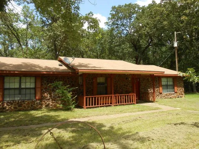 Nice property that joins the Davy Crockett National Forest out of Kennard on CR 1095. This 2 bedroom 2 bath stone house offers over 2100 sq.ft. of heating and cooling. The spacious kitchen has good cabinet and storage space and comes with all of the appliances in it and it opens into the living and dining area. There are 2 living areas in the house with one of them offering a wood burning fireplace. Another nice feature of the house is an enclosed back porch with lots of windows perfect for relaxing and viewing wildlife on. Outside on the 5 acres of completely fenced land you will find plenty of storage with a portable building,pole barn, and another air conditioned building which would make a great office or work shop. Also on the property is a pond and the property offers you access to over 1200 acres of the National Forest.