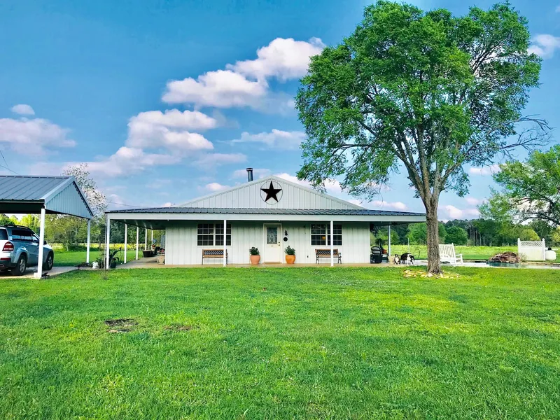 Come see this three bedroom, two bath home with a metal roof, two-car carport, and covered porches. The spacious, open living area has a fireplace and a spiral staircase leads to upstairs storage. This home has ceramic tile flooring throughout, a nice master bath and a large laundry room. There is also a separate guest apartment with tile floors, bathroom with shower and kitchenette great for guests or as a mother-in-law suite. Outdoors, you will find so many ways to enjoy this property! There is an inground pool with a waterfall, a stocked pond ready to fish, and a water well! Give us a call to see this great property today!