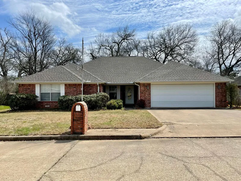 This beautiful home located in the desirable Enchanted Estates Subdivision is a must see. This three bedroom, two bath brick home is the perfect family home. From the moment you walk in, you will notice the large living area with tall cathedral ceiling with beautiful woodwork and brick fireplace. The living room is open to the formal dining room, that could be used as a study. The island kitchen has an abundance of beautiful cabinets, tile countertops, and a breakfast nook. The home has a split bedroom plan with two guest bedrooms that share a hall bath one one side of the home. The primary bedroom is large with a private bath that has his and her sinks, large tub, and separate shower. The laundry room is conveniently situated next to the primary bedroom, with access to the oversized two-car garage. The backyard is completely fenced and you will love the covered porch, perfect for the beautiful spring evenings. For your private showing, give us a call today!