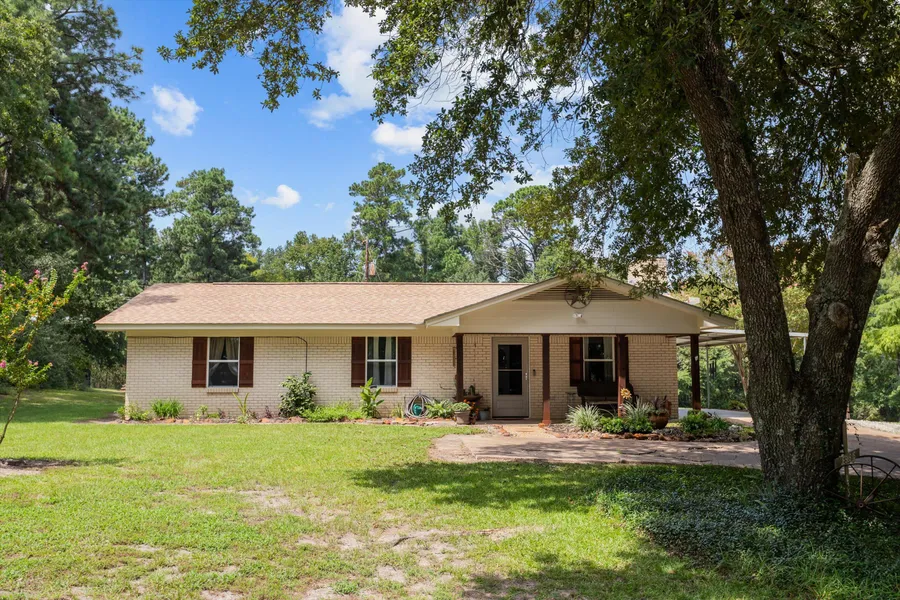 This three bedroom, two bath home sits on a hill with beautiful shade trees in the Weches community. The home is in good condition, has pretty paint colors, and laminate flooring throughout. The living area offers a wood-burning fireplace and lots of windows. The handy kitchen features stained cabinets, granite countertops, stainless steel appliances, and a dining area. The primary bedroom has a private bath with updated tile shower. The guest bedrooms share a hall bath that has also been updated. Outdoors is made for entertaining with a covered patio on the back of the home perfect for that morning coffee, and a covered carport. The spacious 16x19 shop is wired and ready for your tools and lawn equipment. This property has plenty of room for gardening and pets. Hurry to see this property!