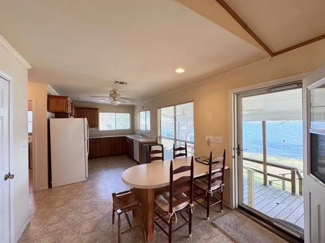 WATERFRONT RETREAT AT HOUSTON COUNTY LAKE! Nestled on the serene shores of Houston County Lake in Crockett, TX, this exceptional two bedroom, one bath lake house presents an ideal retreat, elevated above the water on two combined lots, spanning 1.03-acres and boasting approximately 100 feet of bulkheaded shoreline. Upon entry, the inviting living room welcomes you with a gas fireplace and vaulted ceilings that connect to the island kitchen. Large windows throughout the home captures stunning lake views. The two well-appointed bedrooms share a central hallway bathroom equipped with a shower, while one bedroom includes sliding glass doors leading to a private porch, ideal for enjoying the morning coffee. Exterior highlights include a covered back porch, two-car carport, storage shed for outdoor essentials, and a pier and boathouse. Call today for more details or to schedule tour.