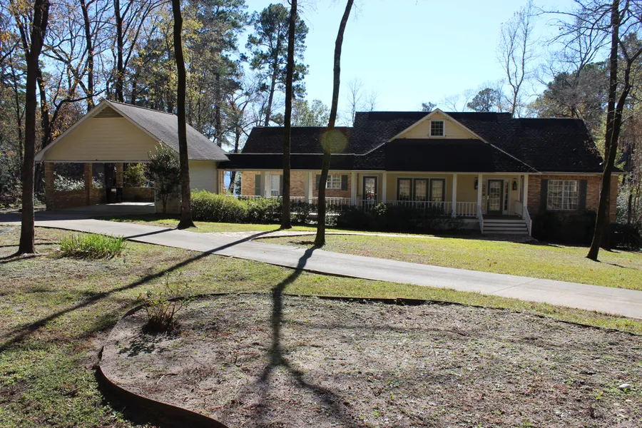 This beautiful three bedroom, two and one-half bath water front home on 1.50 acres has so much to offer! There are breath taking views from every angle. The property has over 150' of shoreline, a beach area, nice pier, boat house, and pretty landscaped grounds with a sprinkler system. Don't worry about paying large water bills to water the yard, the water is pumped out of the lake! The exterior of the home is old Chicago brick and hardy plank. As you pull in, you will notice the circle drive with brick walkway that leads you to covered porches and a large deck across the back. The large attractive entry leads you to a den with fireplace, cathedral ceilings, and numerous windows and french doors that bring the outside in. Ceiling fans, recessed lighting, and dimmer switches throughout the home create that special mood. The formal dining has a large closet with shelving for all your server ware. The light, bright kitchen has wonderful views, under counter lights, nice appliances, and beautiful lead glass front cabinets for those special dishes. Sit at the breakfast table and enjoy the view! Secluded master suite has french doors that lead to back deck. The master bath has double sinks, separate shower, Jacuzzi tub, lots of cabinets, and a nice walk-in closet.There is a convenient powder room, two guest bedrooms with fabulous views, and a full bath. This home has a basement for storage, two-car carport with storage, pretty wood floors, storm windows, and new central air and heat unit. In the spring, the Azaleas in bloom are a sight to see! Four your children or grandchildren, nestled in the trees there is a tree house for their enjoyment. Spring Creek Lake is great for fishing or boating and the owner has a beach area for children to enjoy! If golf is your game, you will enjoy the 9-hold golf course! This property has so many amenities - call to see for yourself!