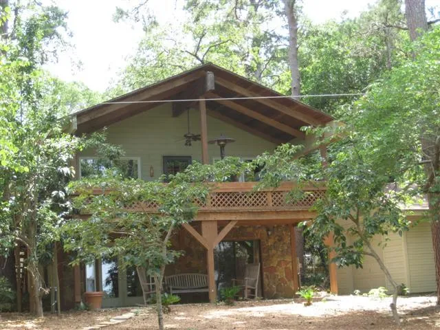 LAKE LIVING AT ITS BEST! THIS TWO STORY HOME ON AN OVERSIZED LOT HAS 85 FEET OF SHORELINE, PIER, BEAUTIFUL YARD WITH GREAT SHADE TREES, MAGNOLIAS, PALMS, AND A VERY PRIVATE SETTING. YOU WILL BE IMPRESSED BY THE UPPER AND LOWER DECKS - GREAT FOR OUTDOOR LIVING! DOWNSTAIRS, THE LIVING AREA HAS A FIREPLACE, THERE ARE TWO BEDROOMS, ONE BATH, NICE LAUNDRY WITH SINK AND GREAT STORAGE. UPSTAIRS, THERE IS A LARGE, OPEN LIVING / KITCHEN / DINING AREA, PRETTY WOODWORK, PINE FLOORS, WET BAR AREA, HIGH CEILINGS, TWO BEDROOMS AND A FULL BATH. THIS HOME HAS GREAT STORAGE WITH TWO SEPARATE GARAGES, CONCRETE DRIVEWAY, COVERED CARPORT AREA FOR PARKING A BOAT, AND MUCH, MUCH MORE. CALL FOR DETAILS.