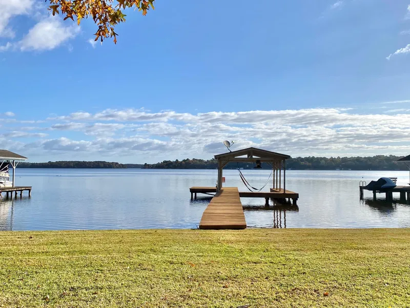 This perfect retreat sits waterfront at Houston County Lake in the Golden Acres Subdivision. This beautiful two-bedroom, one bath lake house will catch your eye with its amazing lake views from its large front windows. Inside the home, youll notice all new vinyl flooring throughout and dome lighting in the living area. Bring your boat to put in the boat slip and cool off on the completely screened in front porch with friends and family. Along the lake front, the entire banks edge is protected by a concrete bulkhead. Additional amenities include a new stack-on washer/dryer, microwave, oven, refrigerator, digital sprinkler system and detached garage. This is the perfect weekend retreat for somebody wanting to enjoy lake living. If youd like to take a personal tour, please give us a call!