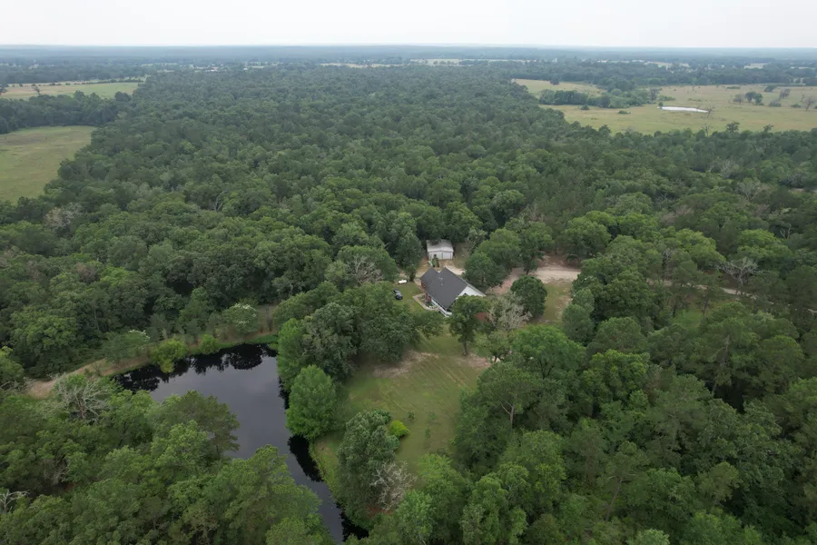 Nestled just off CR 4035, in the Lovelady ISD, this three bedroom, two bath brick home sits on 22.50 acres with a beautiful pond visible from the back porch. Once you enter this property, you will love the winding rock road with gorgeous trees lining each side of the driveway. Upon entry of the home, you will appreciate the vaulted ceiling in the large living area. The island kitchen has great cabinet and prep space, as well as a breakfast nook. The primary bedroom has a private bath with a walk-in shower, and great closet space. Two guest bedrooms are nice sized and share a full bath. Outside the home you will love both the front and back porches. Each porch is covered and both have wonderful views of the property. Just off the home, you will enjoy two storage barns to store equipment. If you enjoy fishing, you will love the stocked pond with pier. This property is heavily wooded and offers great nature watching. Call today to schedule a private tour of this wonderful property.