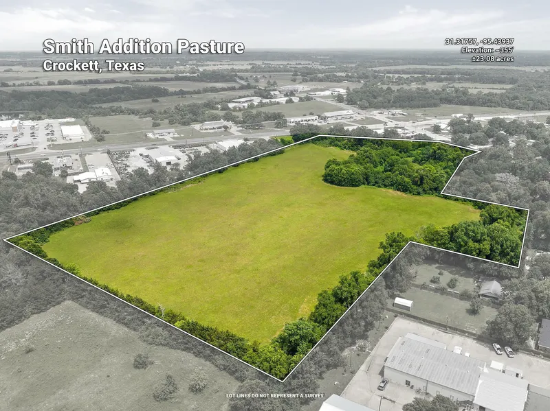 The Smith Addition is located on the east side of the city of Crockett. The property has approximately 115 feet of Grace Street frontage. The Grace Street frontage consists of an approximately 0.87 acre lot. The property also has approximately 470 feet of Joe Kale Road frontage. The Joe Kale Road frontage consists of three lots. The lots range in size from approximately 1.14 acres to 2.31 acres. The majority of the property is approximately 17.56 acres of pasture that is currently under agriculture exemption.