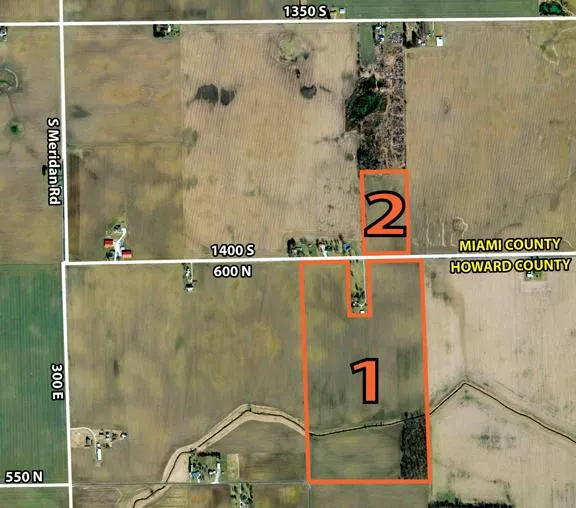 Property is located 4 Miles NE of Kokomo and 3.25 miles east of US 31 on the Howard/Miami County line. CR 600 N in Howard County on the south side of the road and CR 1400 S in Miami County on the north side of the road.