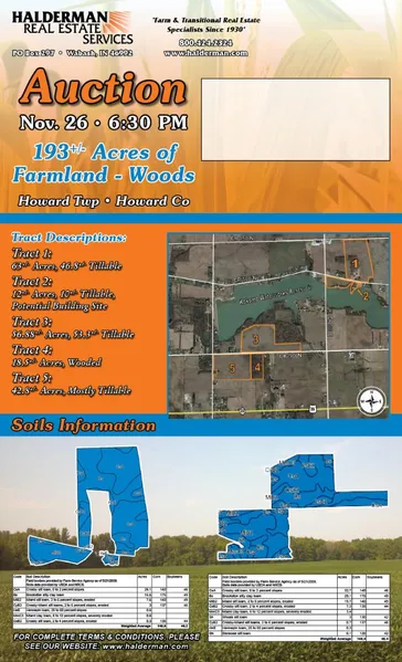 General Location: 5.5 Miles Southeast Of Kokomo. Tracts #1 & 2: East Of CR 500 E On The North Side Of Reservoir #2. Tracts #3-5: On The North And South Sides Of CR 50N, Just East Of CR 400 E.