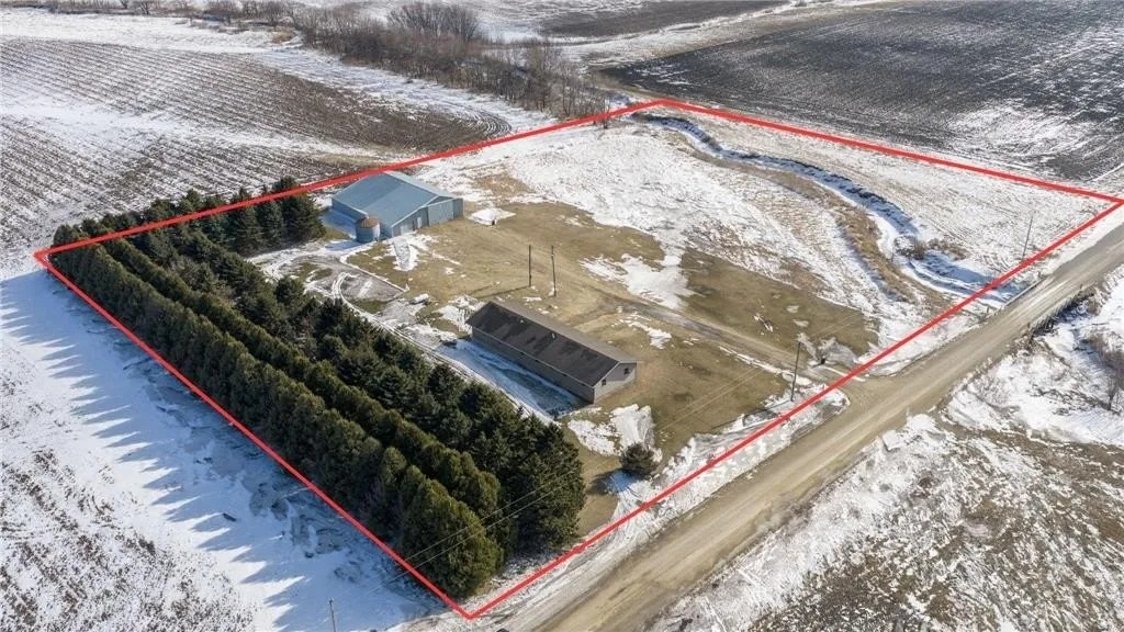 Panoramic views of the countryside on over 5 acres with creek running through property. This fine property also has a 3 bedroom 1 story home and 36 x 72 machine shed with a 16 x 72 lean to. This home features 3 bedrooms, 2 baths, main floor laundry, hardwood floors and a living room, kitchen and dining that are enhanced with abundant natural sunlight. 26 x 30 insulated attached garage with 220 electric. 1500 bushel grain bin. Perfect hobby farm for horses/livestock. Mature pine tree windbreak. Only 1/4 mile off hard surface road.