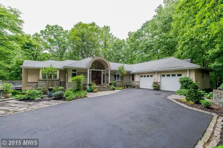 Elegant & energy efficient home with enchanting panoramic views of private woods offers rich mahogany floors throughout main level & cathedral ceilings graced w/skylights. Great Room w/gas FP w/granite hearth. Kitchen w/granite counters, island, double convection oven, SS appls & more! Luxurious owner's suite w/balcony & lux bath. Extensive landscaping, perfect for entertaining inside and out!