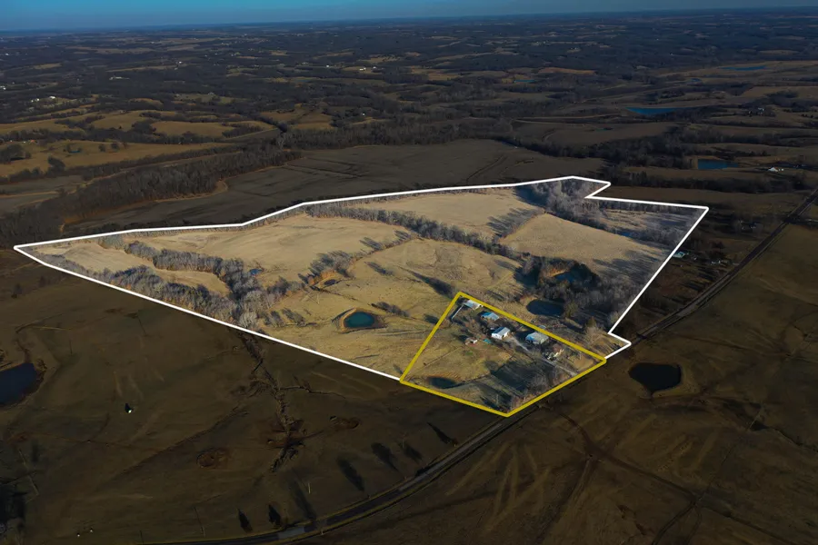 TRACT 1 - This 122.59 acres is a mixture of good tillable fields, pasture and recreation ground. This tract has nice access of Hwy H. It includes a newer 12,000 Bu. Grain Bin/fan, 56 Acres are currently being farmed, approximately another 41 open acres of pasture including 5 ponds. With a little clean up the tillable acres could be expanded. This tract should also make a great place to hunt.