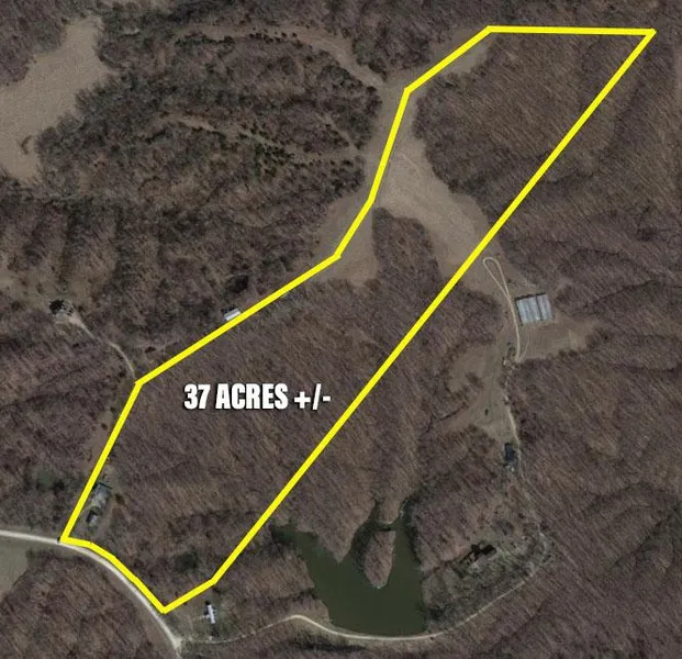 LAND & HOME: (12 Noon) 37 Acres m/l of wooded land with majority in heavy timber Few acres fenced for livestock Tower style deer stand on back portion of the property Property has 1,300 sq ft 1 bedroom shouse w/ loft bedroom Family room area Nice wrap around kitchen w/ oak kitchen cabinets, nice gas cook top & wall oven - 1 bathes Laundry - Large closets Additional 20x38 double garage area w/ room to expand Property has another 24x40 Shouse w/ living quarters Open floor plan w/ nice kitchen Full bath 10 garage area w/ washer & dryer hookups