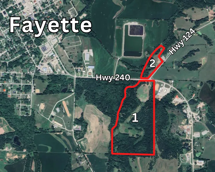 Located on the south side of Hwy 240, along the SE edge of Fayette city limits. A great opportunity to own a manageable, good quality recreational property. Featuring 15 +/- open acres of grassland w/ the remainder in dense woodland. Maintained trail along the East side through the timber accessing the South clearing. Excellent deer & turkey hunting property w/ many possible food plot locations. Lots of oak & future marketable timber scattered throughout the property. Bonne Femme Creek runs along the West boundary providing a year-round water source for wildlife. The small oxbow lake in the center of the property offers potential for further waterfowl development as well. The tower stand pictured is included. Property is not enrolled in any government programs. A rare chance to own a quality hunting property near Fayette!