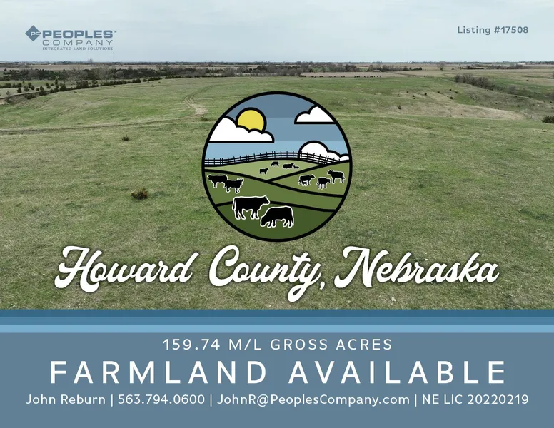 Howard County, Nebraska Land Available - Peoples Company is pleased to present high-quality pasture in the heart of Howard County. The property has 159.74 m/l gross acres with extensive fencing for rotational grazing (See attached Fence Line Map). A well with a windmill is centrally located to provide adequate water to all 4 pastures along with 2 ponds. Primary soil types include Uly-Coly Silt Loams, Coly Silt Loam, and Holdrege Silt Loam.