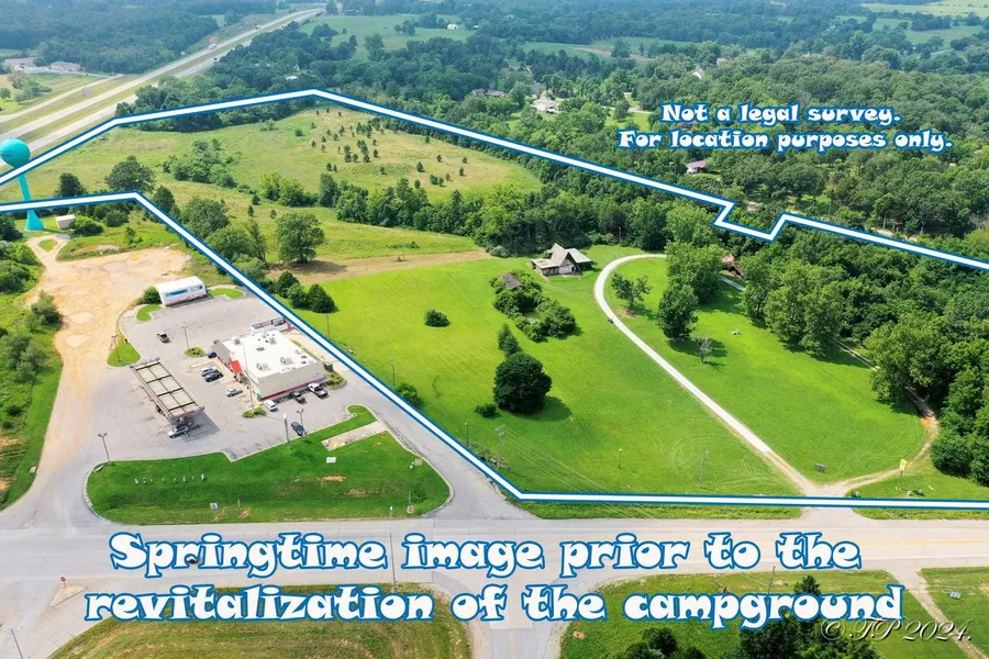 It's not often you find 27 acres of commercial property with 4-lane access readily available. Imagine what you could do with this piece of property that is surprisingly peaceful for being inside city limits and squarely in the heart of the Ozark National Scenic Riverways. After decades of tremendous business, this property fell into disrepair upon the death of the previous owner and laid dormant and vacant for 20 years. The current owner has begun the revitalization but is unable to continue due to heath concerns. The current owner has installed new water, sewer and electric lines to the RV sites and electric to the metal garage/shop/maintenance building. The city of Willow Springs has installed new power lines & a new/refurbished transformer. The main building has been partially demolished with the upper level removed and a new metal roof installed in May 2023. The interior has been demo'd and is ready for rehab. A new fence was installed between the campground and the adjacent convenience store, and a fenced-in dog park was created. There are 20 primary camp spots, one spot with an extra sewer hookup that can share water and electric with another. There is extra 30-amp and 50-amp electric at the shop building for overflow parking, so there are utilities for 23 RV's. A dump station is also on the property. A total of 27 acres, more or less, between the 10-acre tract that the campground is on and the additional 11-acre tract to the West of the campground, there is plenty of room for expansion or the development of other projects. The possibilities of this property are truly only limited by one's imagination and resources. Call for an appointment to view! The photos are from January 2024 and will be updated when things turn green again if the property has not yet gone under contract or sold.