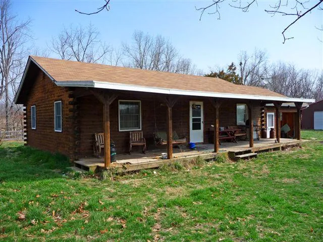 McKee-Built Cedar Log Home on 10 M/L Acres 40x40 Shop w 16 ft wings and concrete floor, includes newer Rotary car lift/air compressor Older Barn for small livestock Fully Fenced 2 Ponds, 1 Spring-fed Covered Front Porch Open Floor Plan w/ 2 Bedrooms and Office New Roof in Nov 2010 Garden Spot